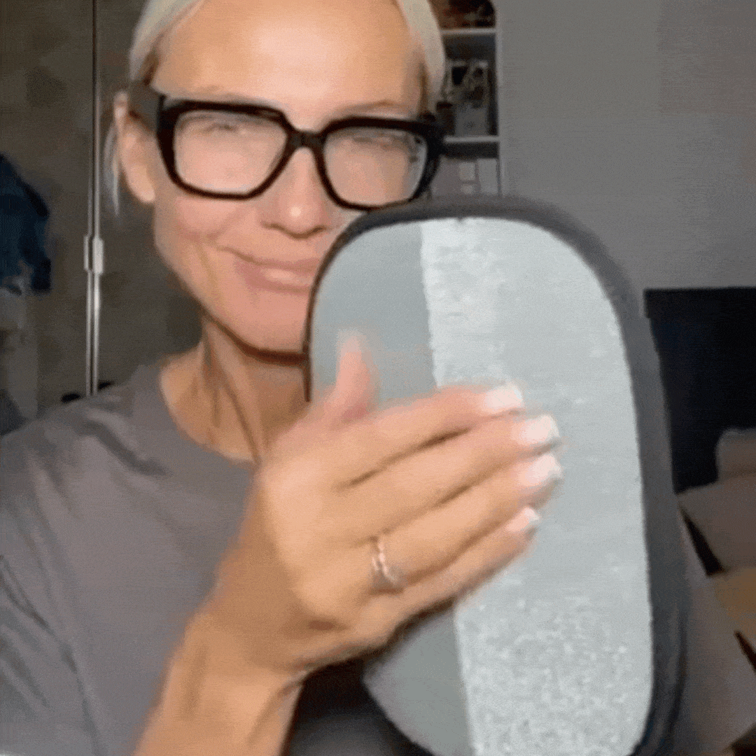 Wsuwasz dłoń i działasz. Oddychająca siatka pewnie trzyma się ręki, więc zbieranie sierści jest szybkie i wygodne — bez zsuwania i bez zmęczenia dłoni.